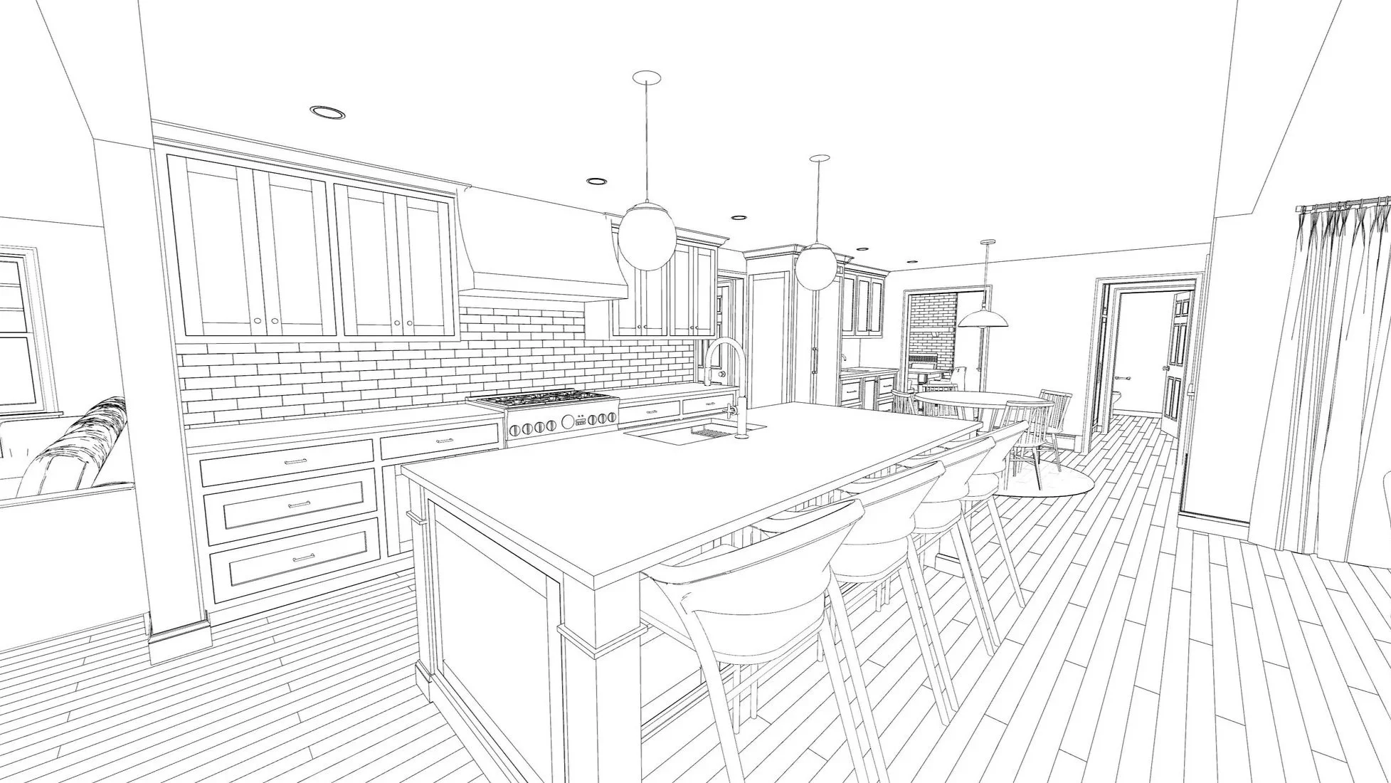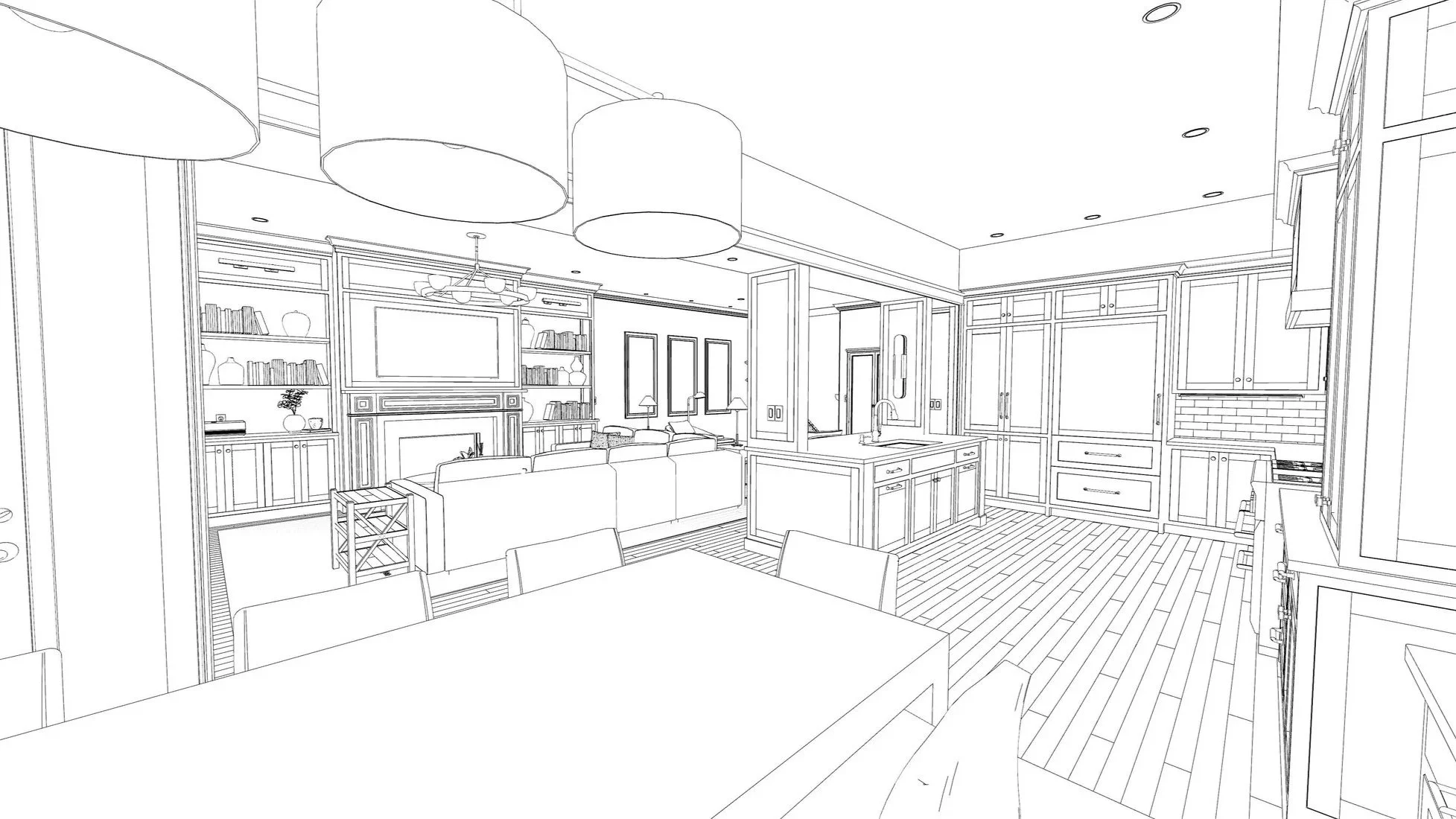 These homeowners have partnered with Refined Renovations to reimagine their first-floor living spaces. The vision includes updating the rear sunroom and exploring a more open connection to the kitchen for an expanded kitchen family room layout, along with transforming an existing family room into a private home office.