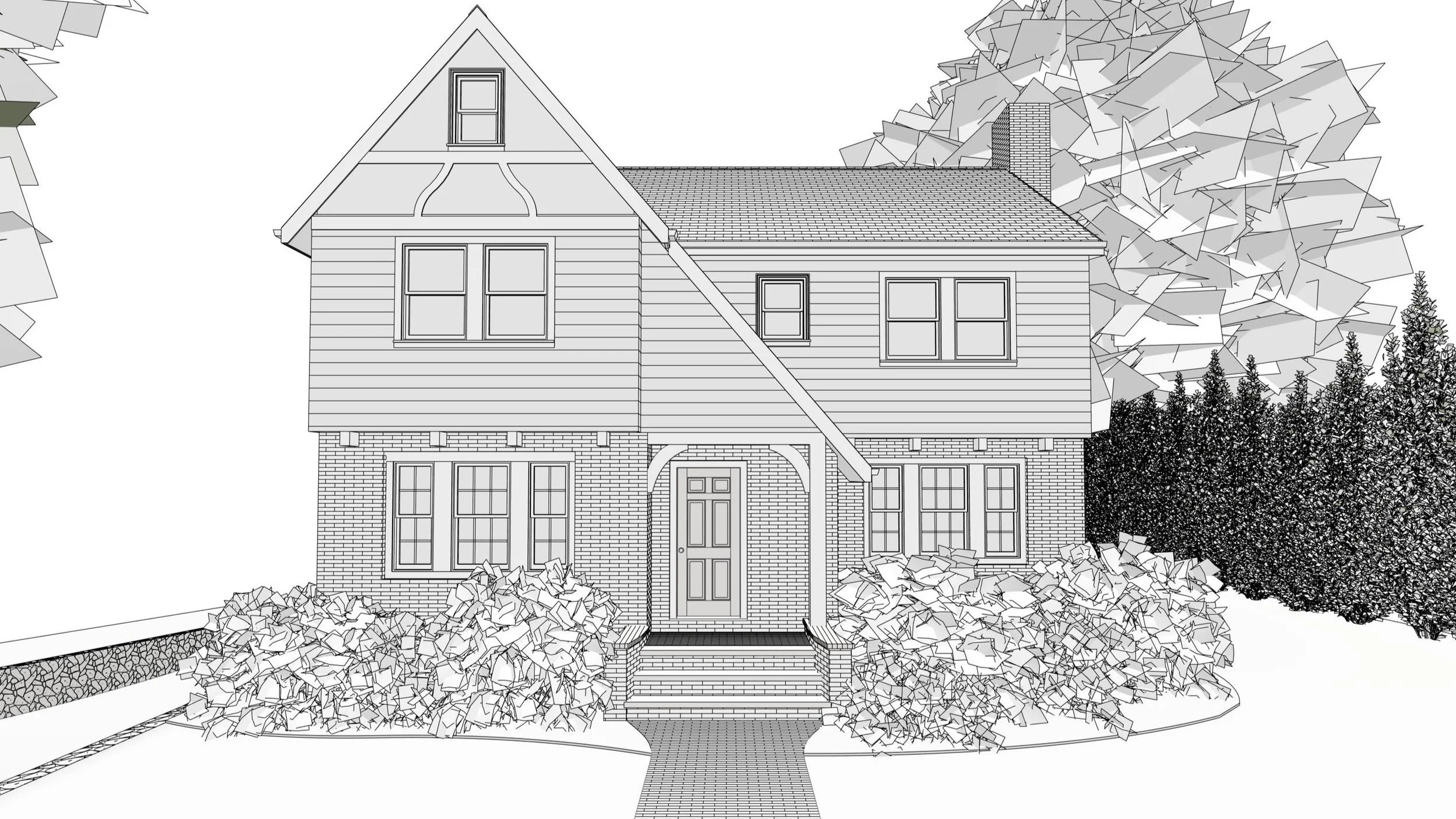 After living in the home for three years, they are now interested in renovating their home to better suit their needs. The clients came to us looking to improve the home’s curb appeal and add space on the main and lower levels. They would love to have a large kitchen and family space that can be extended onto a new rear deck to take advantage of the views of the backyard pond.